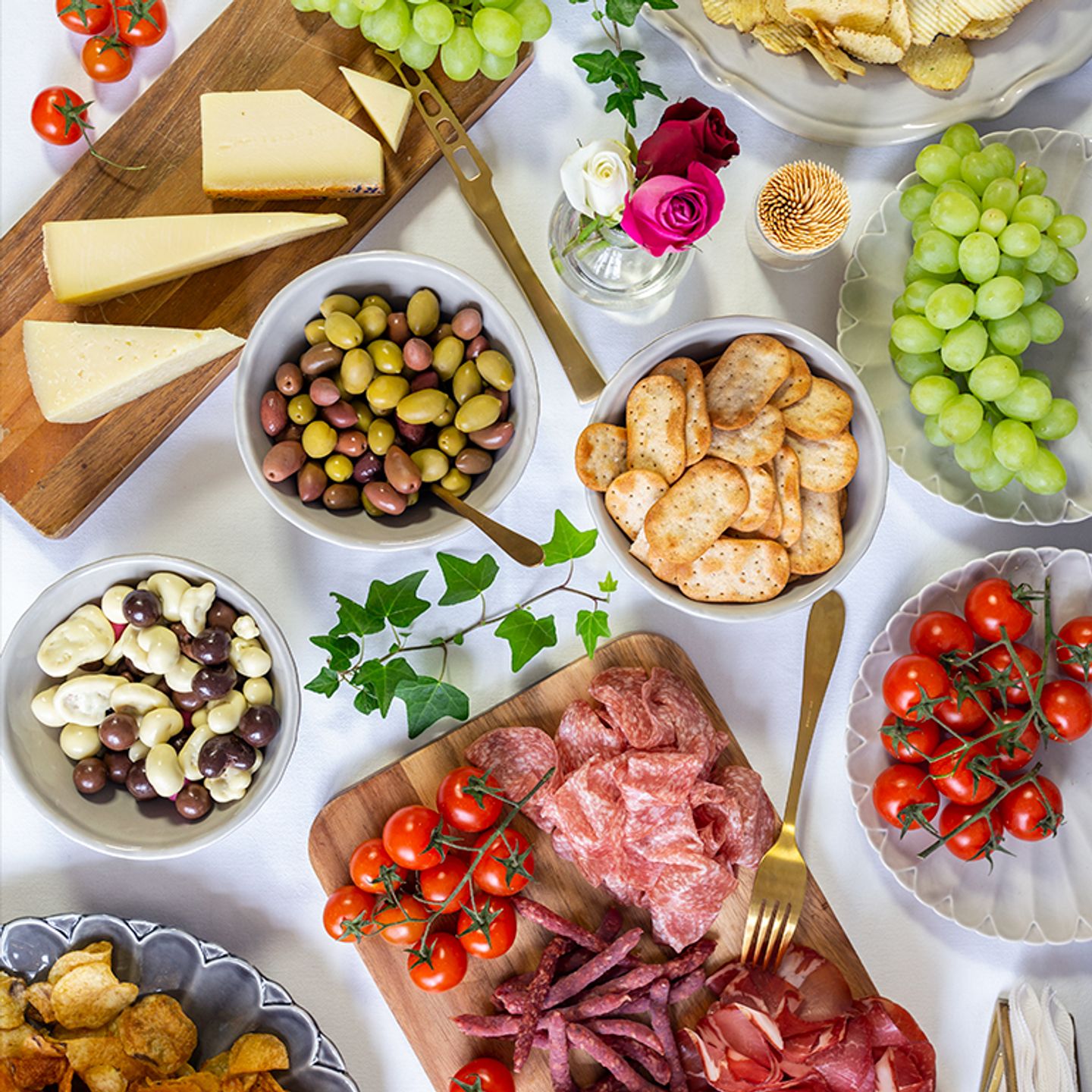Vårt stora after work-paket innehåller läcker plockmat, servetter och tandpetare till servering samt alkoholfri dryck. Duka upp en härlig mix av lyxiga charkprodukter, nötter, läckra oliver, choklad, surdegskex, cocktailtomater och vindruvor.